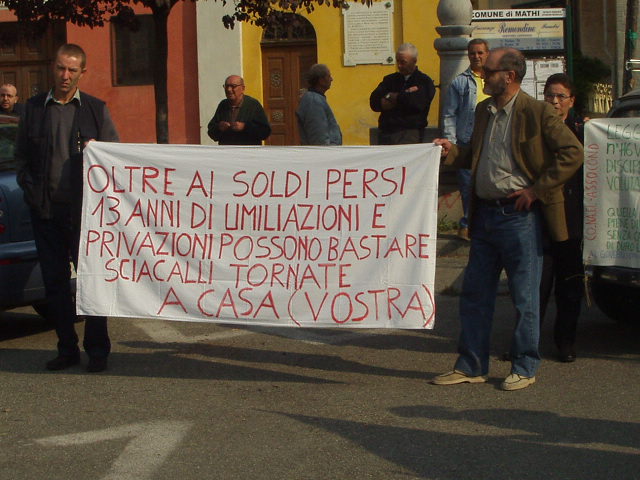 Le istituzioni presenti: il Sindaco di Mathi Crispino Caudera; l’avvocato Alessandro Re, il legale rappresentate del Comitato SID.Invest (che collabora anche con Assocond). L’on. Gabriella Pistone della Commissione Finanze della Camera. Il consigliere Regionale Patrizia D’Onofrio, prima firmataria di un PDL regionale purtroppo non ancora discusso. Il consigliere Regionale Michele Placido. I consiglieri: Mario Contu e Vallero. Hanno registrato l’evento i giornali locali del Canavese e il quotidiano «La Stampa». Molte le telefonate di solidarietà tra cui quelle del comitato Coop Casa del Lavoratore, del Comitato Coop 2000, del Comitato Nirta e del Sen. Cambursano.