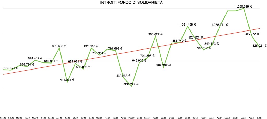Attenzione: questi dati non ci dicono quanti soldi il Fondo ha a disposizione al netto delle quote di indennizzo già erogate e complessivamente. Ci danno solo l’immagine, per noi significativa, della dinamica. Come visualizzerete nella grafica, si tratta, pur con i suoi alti e i suoi bassi, di una tendenza che, a partire dagli ultimi emendamenti approvati nel 2019, risulta in crescita.