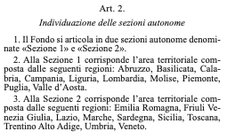 In foto le aree regionali corrispondenti alle due sezioni del Fondo: